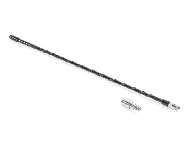 If your 35" factory Wrangler JK or JL antenna causes more static than music, or if you really desire something as good looking as it is functional, then this 16" Stubby Hi Performance AM/FM Antenna is perfect. The fiberglass mast contains copper windings and its plated brass base is fully covered with a static reducing, black water-tight sleeve with UV and pigment stabilizers. The Stubby Hi-Performance AM/FM Antenna is also compatible with our optional Quick Release Antenna Adapter (sold separately) that features a solid stainless steel construction and provides quick antenna removal without the use of tools. Handy when using the automated car wash or heading off-road. Our 16” antennas sit well below the roof line making them less vulnerable to hitting low tree limbs and flopping in the wind. Made in USA.