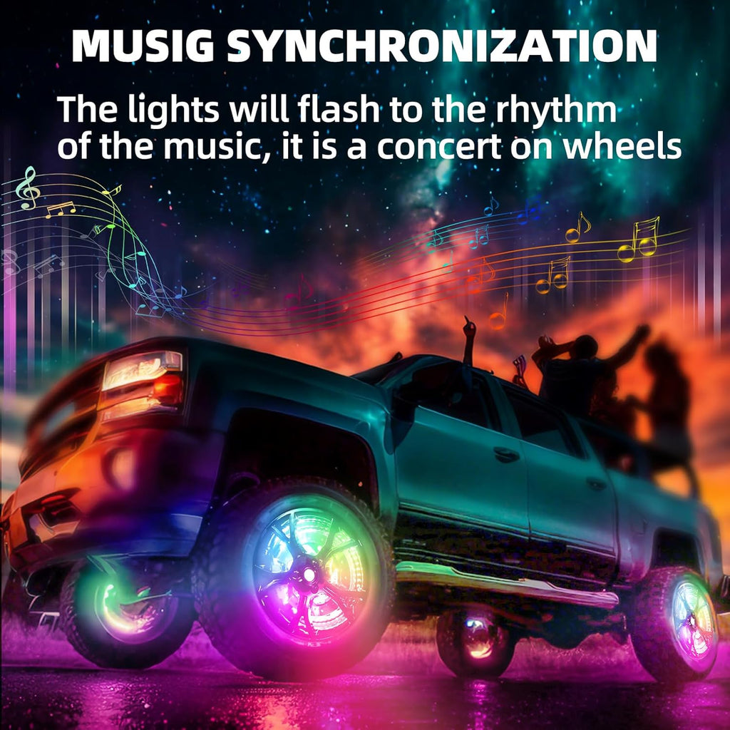 - Intelligent Control System: LED wheel lights support APP/remote control/vehicle system triple control, the lights flash synchronously with the rhythm of the music, creating a mobile concert-level light and shadow feast on wheels.