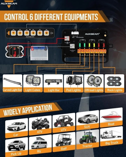 - Wide Application. The Auxbeam cable extension has a broad range of applications and can be utilized to extend control over any vehicle electrical appliance for your modification needs. This includes, but is not limited to UTVs, trucks, trailers, buses, motorhomes, and long-distance parking aid sectors