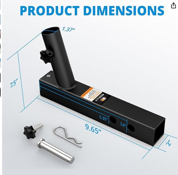 - COMPATIBILITY: Boslla hitch mount flagpole holder fits all Jeeps, Trucks, SUVs, RVs, Pickups and Camper Trailers with standard 2-inch receivers. Fits mounting flag Poles with a diameter of 0.7-1.3 inches. Tips: If your vehicle has a 33" or 35" spare tire, you may need to install an additional 2 inch hitch receiver. (Please check the detail image to see if you need an extender)