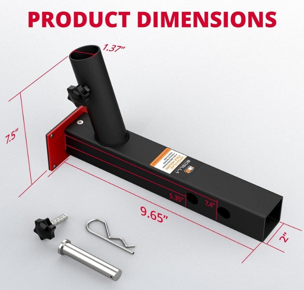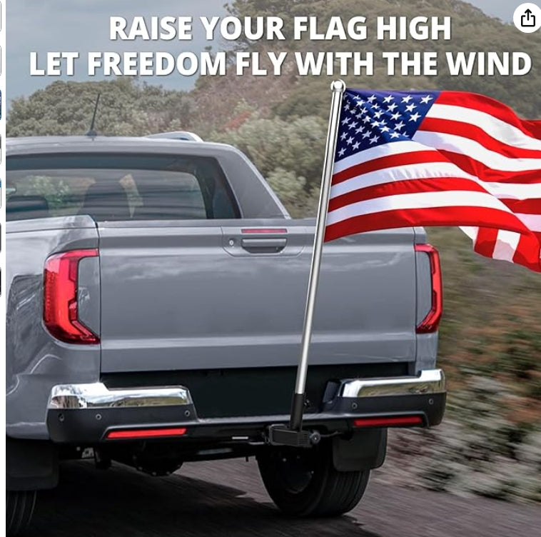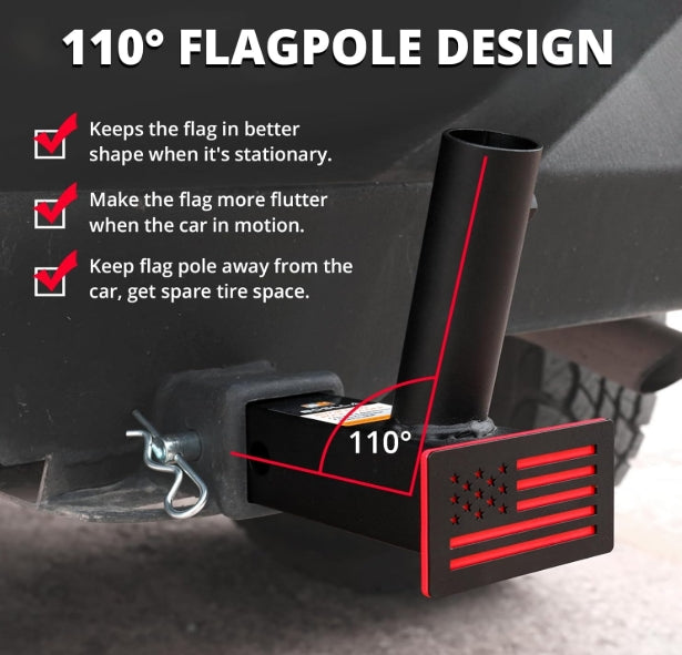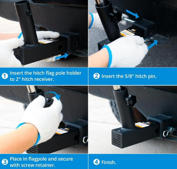 - EASY TO INSTALL: Quick 1-minute installation with accessories included. Simply insert the flag pole holder bracket into the 2" hitch receiver and secure it with the hook pin, then hand-tighten the screw to secure the flagpole.