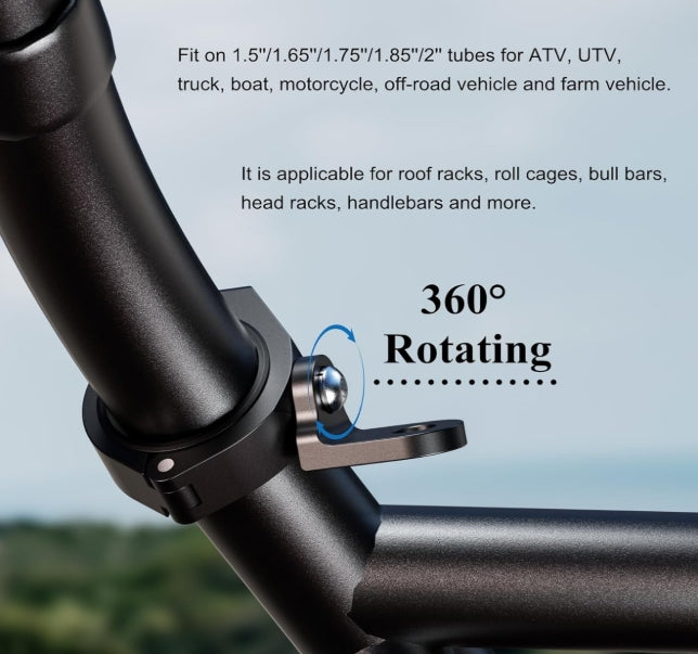 • Fit on 1.5''/1.65''/1.75''/1.85''/2'' tubes for ATV, UTV, truck, boat, motorcycle, off-road vehicle and farm vehicle. It is applicable for roof racks, roll cages, bull bars, head racks, roll bars, handlebars and more. Please Note: Before purchasing, please measure the diameter of the mounting rail to confirm whether this clamp mount fits your rail