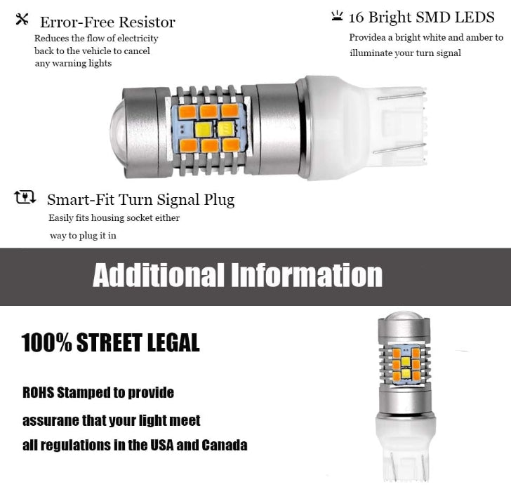• The jl turn signal bulb switchback led is real plug an play, come with instructions to help you finish the installation.